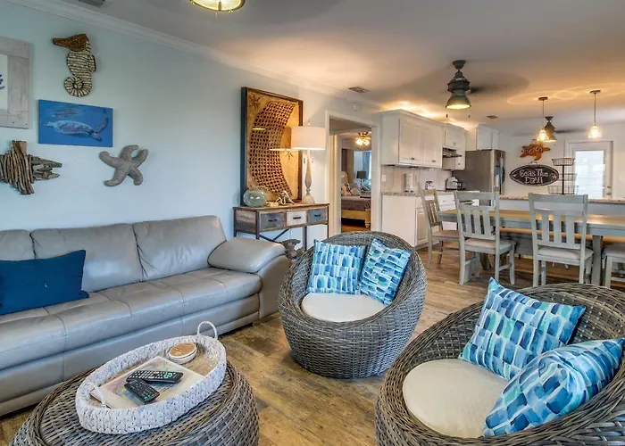 Fixé à 5 minutes d'Island Baptist Church et à 5 minutes à pied de Beach Access 11, Villa Mesquite House Downstairs Unit de 105 m^2 est situé à South Padre Island. Les chambres de la villa fournissent à la cafetière/théière, un coin salon et une TV.